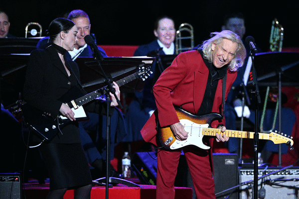 LOS ANGELES — Joe Walsh is onstage at the Troubadour on a recent afternoon performing his song "Lucky That Way" for an audience of about 50 people. His guitar playing is bluesy and cool, his voice a lovable honk. But this isn't a gig by the 78-year-old rock star, at least not exactly: His instrument glinting under the stage lights, Walsh is showing a crowd of reporters one of the more than 400 guitars he plans to part with in a sell-off organized by Julien's Auctions.